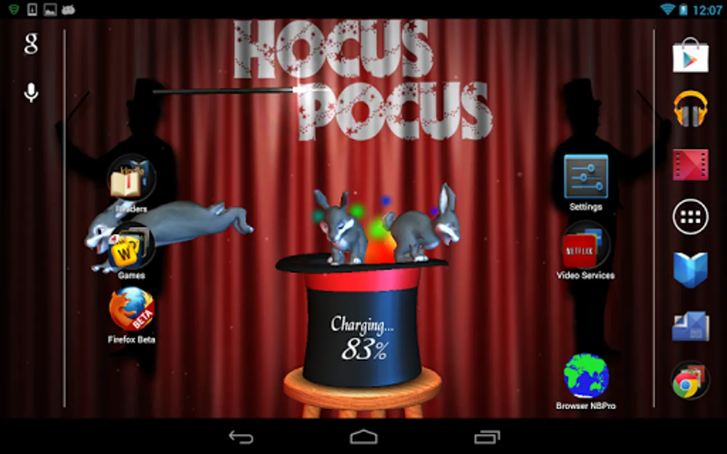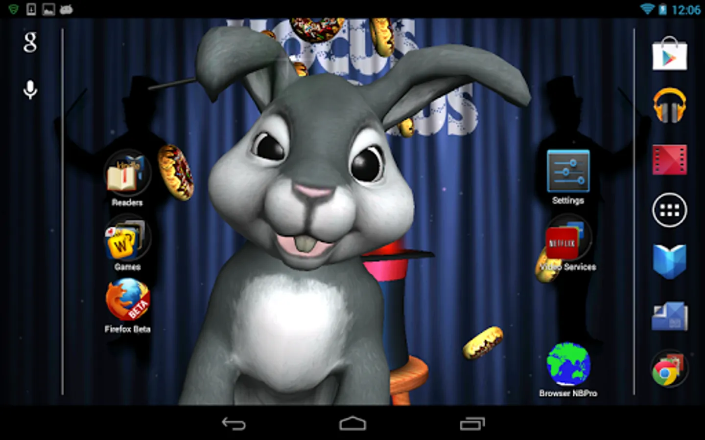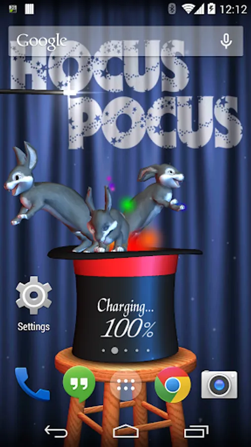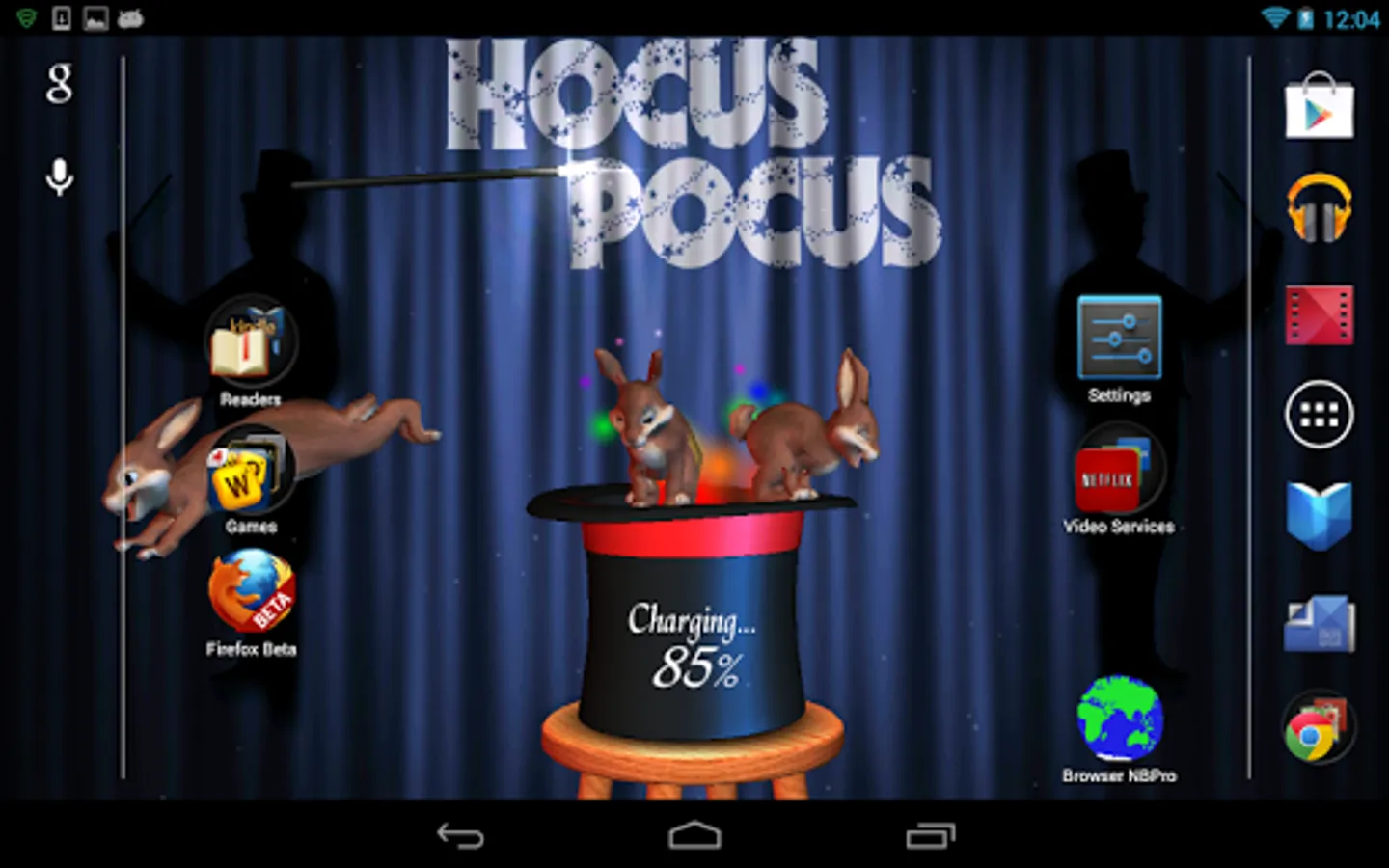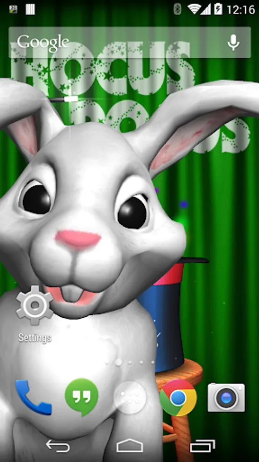 Hocus Pocus is a fully 3D animated live wallpaper for your Android device featuring a magic wand that taps the magic hat to start the action, including: