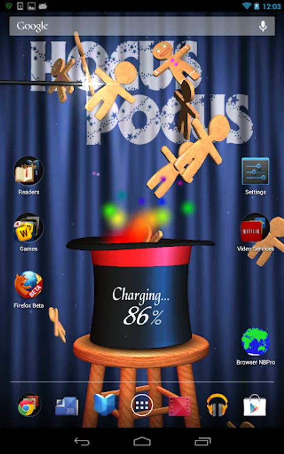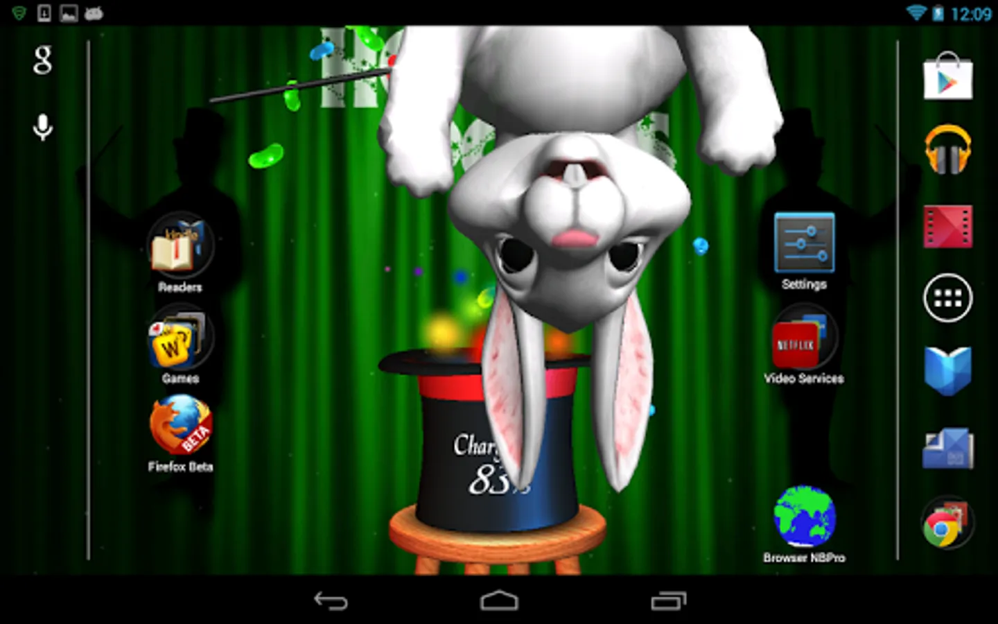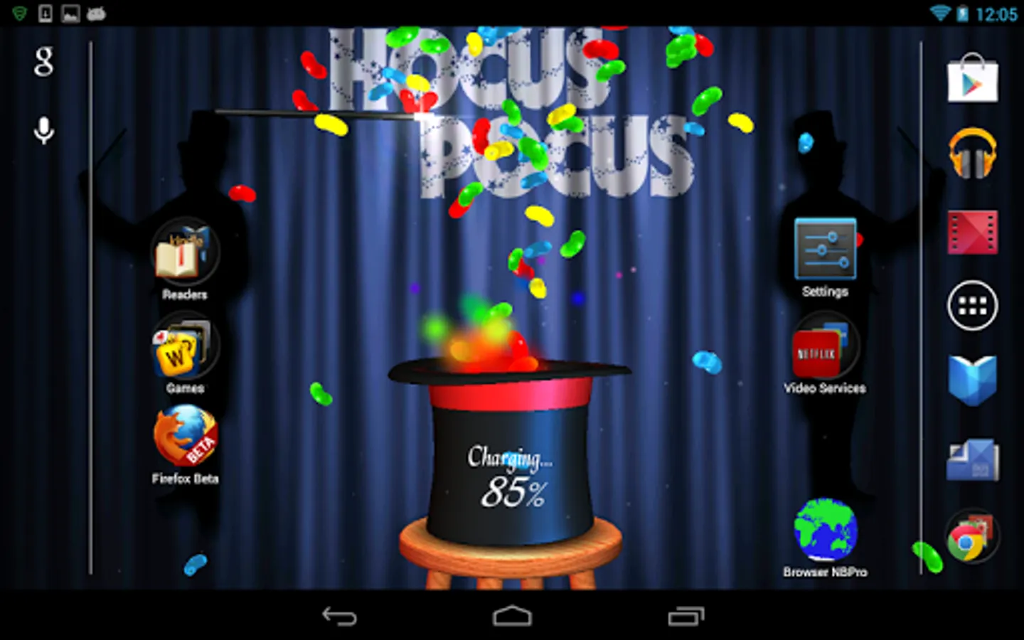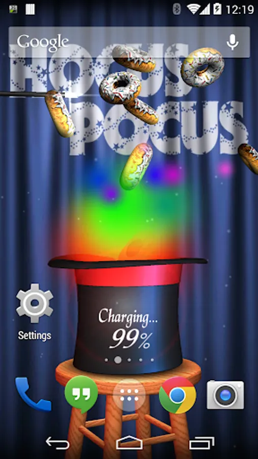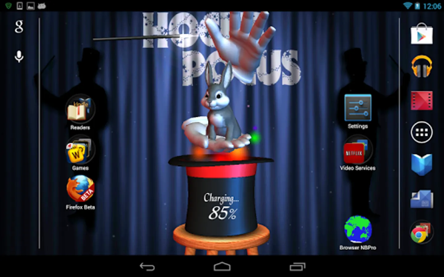Hocus Pocus is a fully 3D animated live wallpaper for your Android device featuring a magic wand that taps the magic hat to start the action, including: