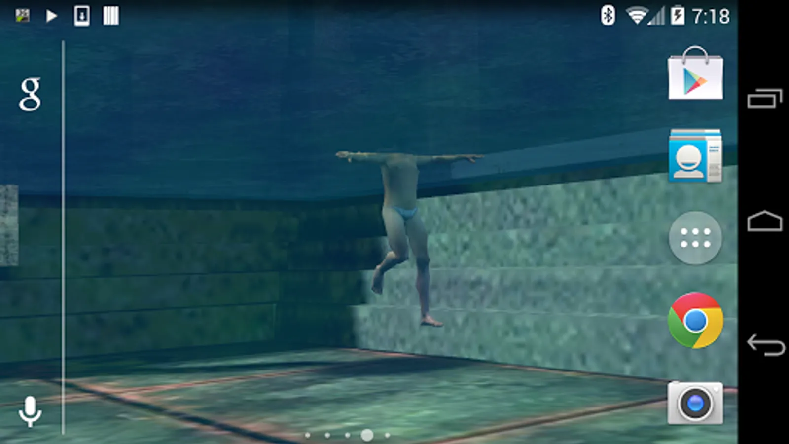 Nexus 7 (2012) owners, please take note: Due to a small bug in the Unity engine, you may need to set the wallpaper twice in order to properly in order to see the swimmer’s texture properly. The swimmer will initially look uniformly white or weirdly jumbled until the wallpaper is set a second time. The wallpaper will show an error message when being set for the second time, this is normal and the wallpaper should restart normally.