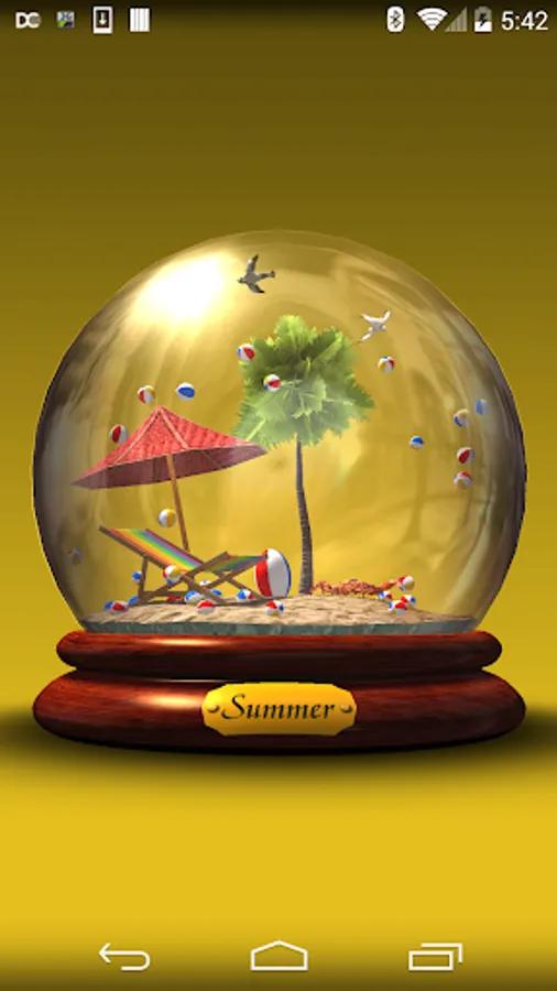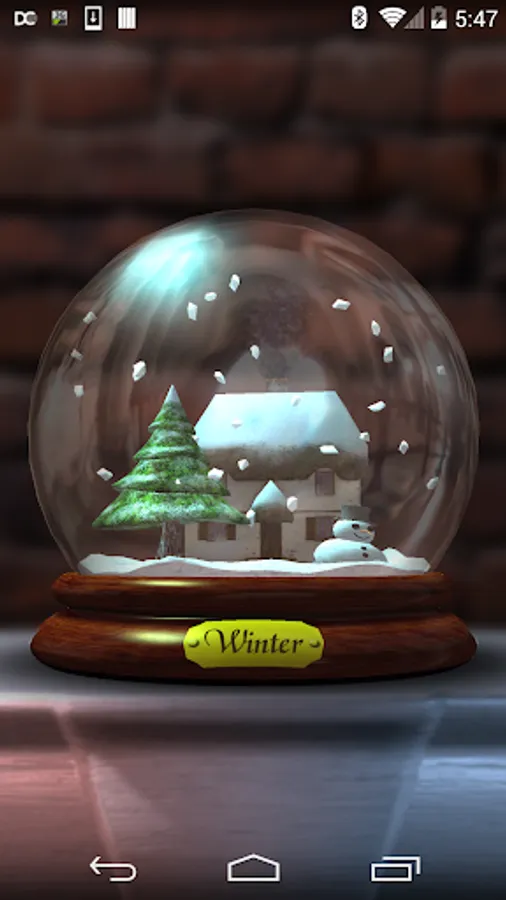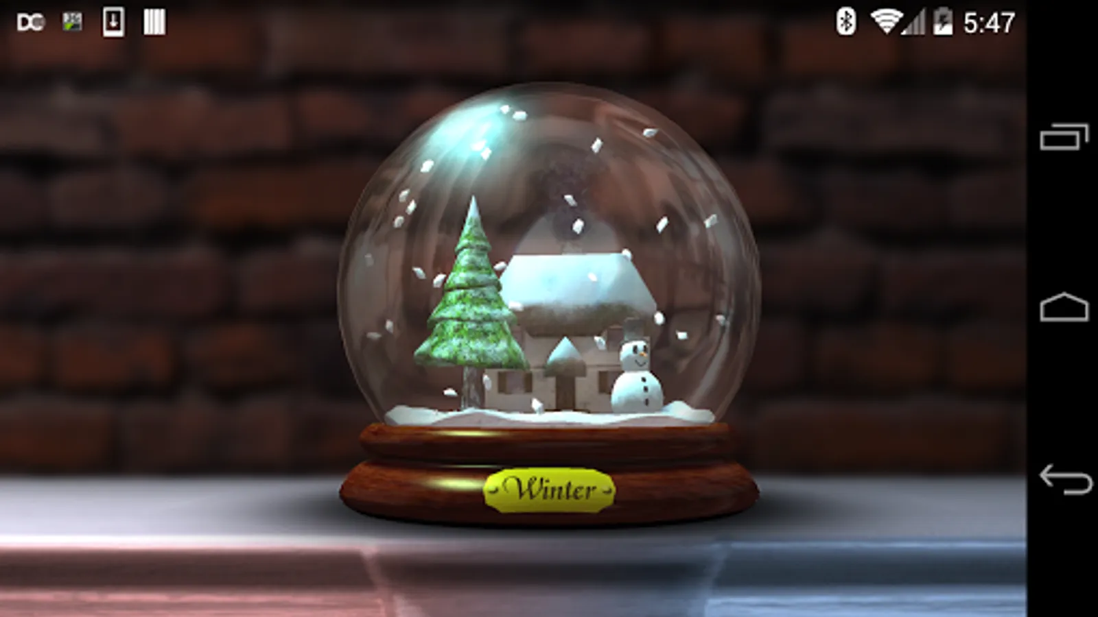 All four seasons, beautifully presented, in a shakeable, 3D snow globe live wallpaper.