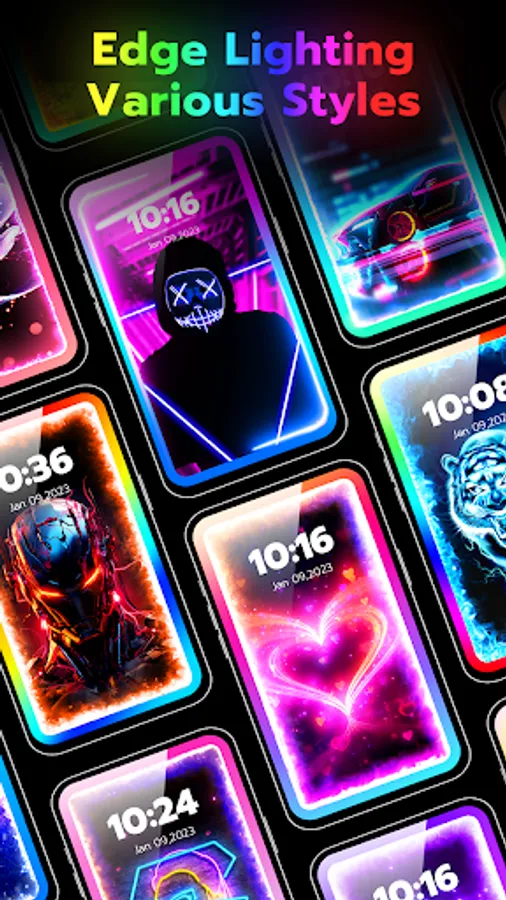 Useful for all types of screens (notch screen, infinity O, U, V) and all mobile phones!!! Free Lighting Edge Screen - borderlight live wallpaper app will bring you a brilliant edge lighting wallpaper experience.
