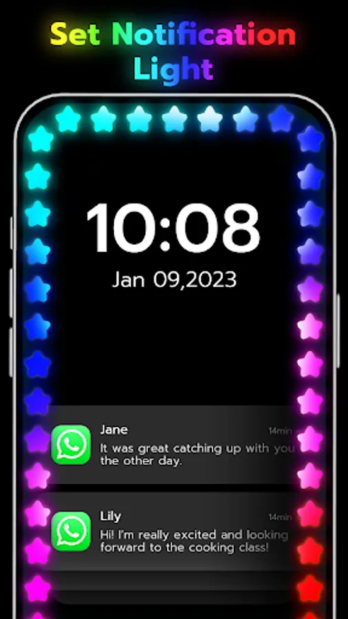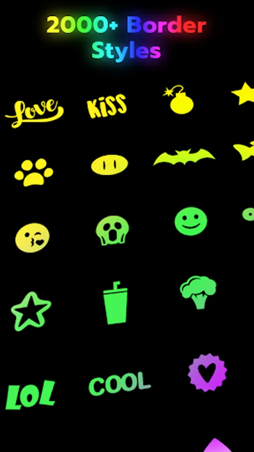-More than 100+ types: Choose edge screen lighting patterns (Heart, Moon, Cloud, Stars, Kitten, Puppy, Rabbit, Interesting emoji & Sticker, Ice cream, Fruit etc.)