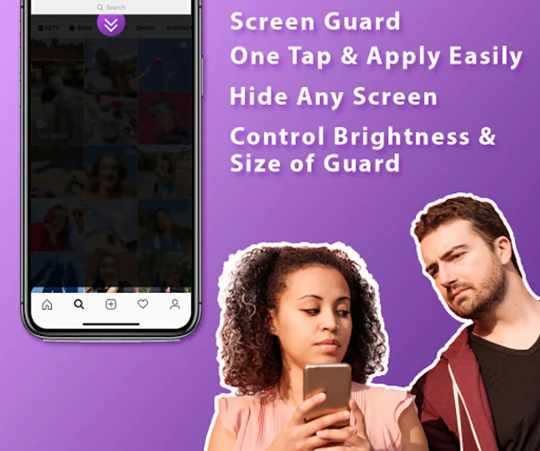 Screen guard protect phone screen from others eye and protects your privacy by applying a screen filter that makes it difficult to read your phone screen for others. With screen guard privacy screen app you can hide your mobile screen privacy from people around you. Mobile screen guard works amazing when you're reading and writing a message or even just using privacy screen guard and filter. Privacy screen guard & filter app protect your privacy with black screen filter or eye protector. Screen dimer app also provide screen filter to enable hide screen on mobile.