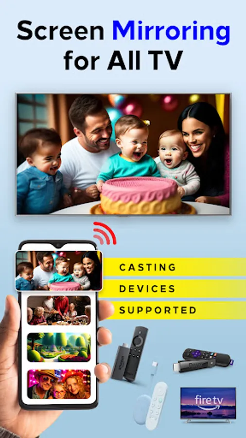The free Cast to TV screen mirroring app offers the fastest and most accurate screen mirroring for television. Watch your favorite movies on Hisense smart TVs, Sharp TVs, and Cast smart TVs while reliving your cherished family memories. Without any restrictions, stream for free from a phone to the TV.