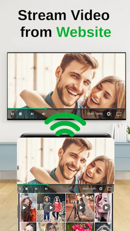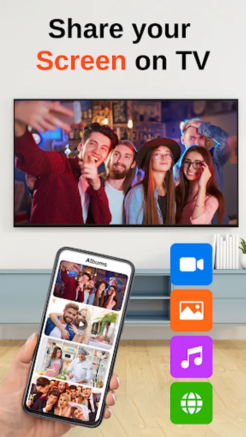 Screen Mirroring app for all TV allows you to cast to tv Chromecast & mirror your smartphone on the screen mirroring in high quality. You can easily access all of your games, photos, videos, & other apps on a big TV screen using this cast to tv screen mirroring for all TV free app.
