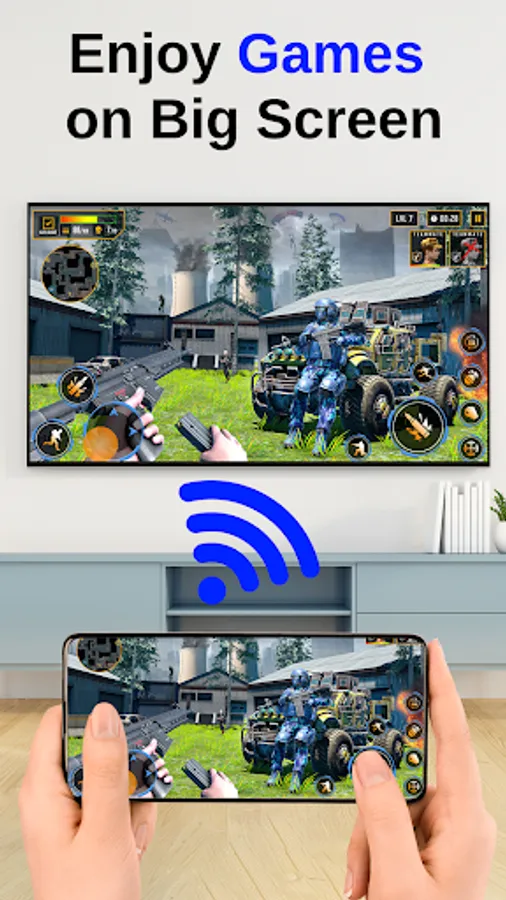 🔸 Play mobile games like PUBG Mobile, Call of Duty: Mobile, Clash of Clans, Car racing games, & many more on your BIG TV screen