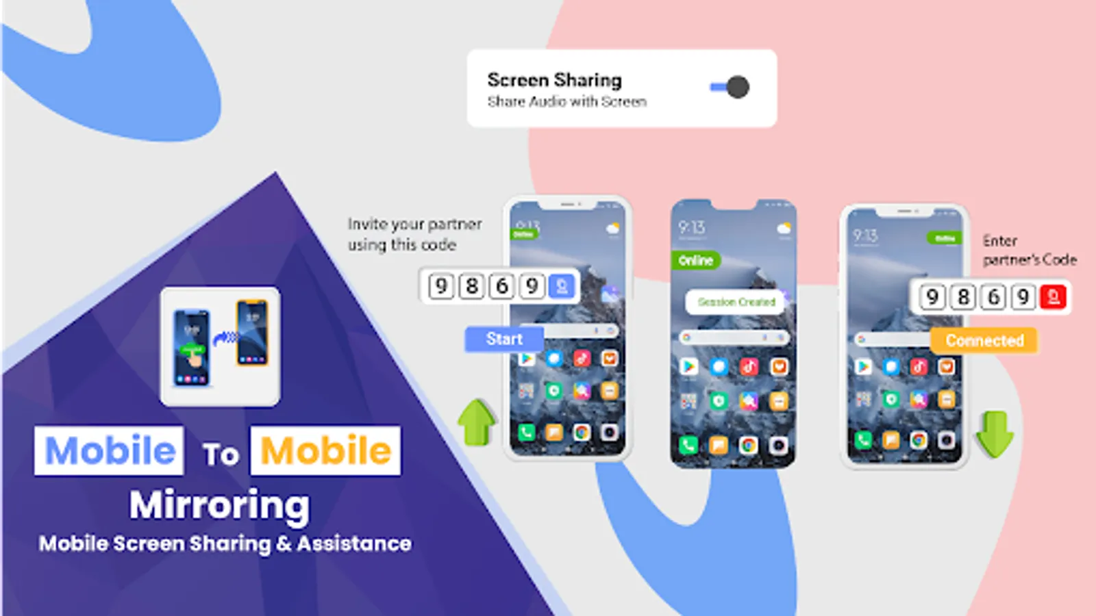 Screen Mirroring: Mobile to Mobile Screen Sharing app is an instant mobile screen-sharing app. You can share your phone screen with other android phone user friends. You can see your friend's phone screen on your android phone screen. Get Mobile to Mobile Remote Control Access. Mobile to Mobile Connect is a easy screen mirroring app. As you know Screen Mirroring for all TV app is a famous app for screen sharing. Now Mobile to mobile screen mirroring is a new idea among the casting and mirroring apps.
