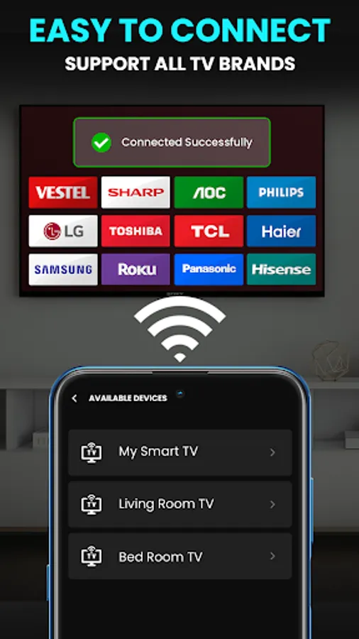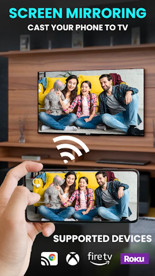 miracast screen mirroring projector app works seamlessly with multiple devices Including cast to tv Chromecast, Roku, Roku Stick, and Roku TVs, most smart TVs such as Hisense, Samsung, LG, Sony, Panasonic, TCL, Toshiba, Xbox, FireTV, and Fire Stick, and other.