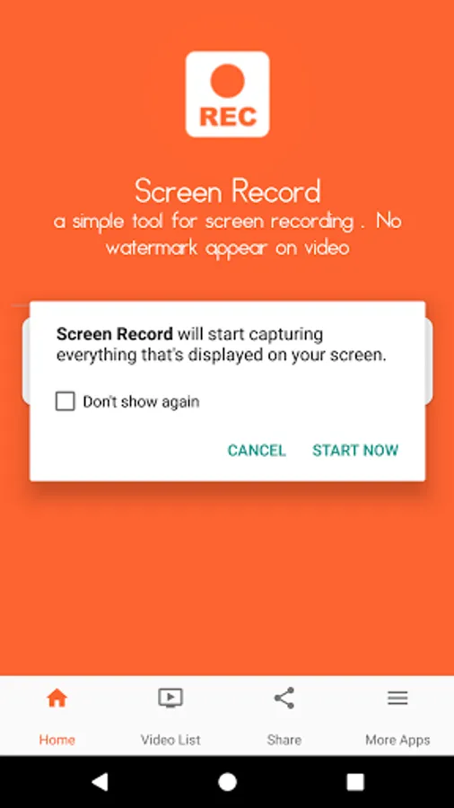 Screen Recording is a free application. There is No watermark appear on the video . You can show all the recorded videos and easy to share.