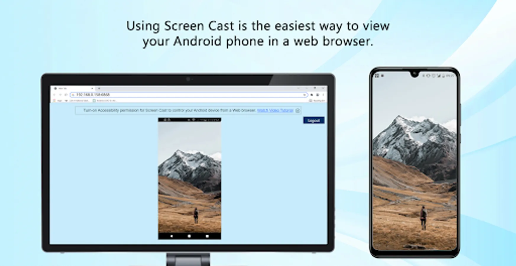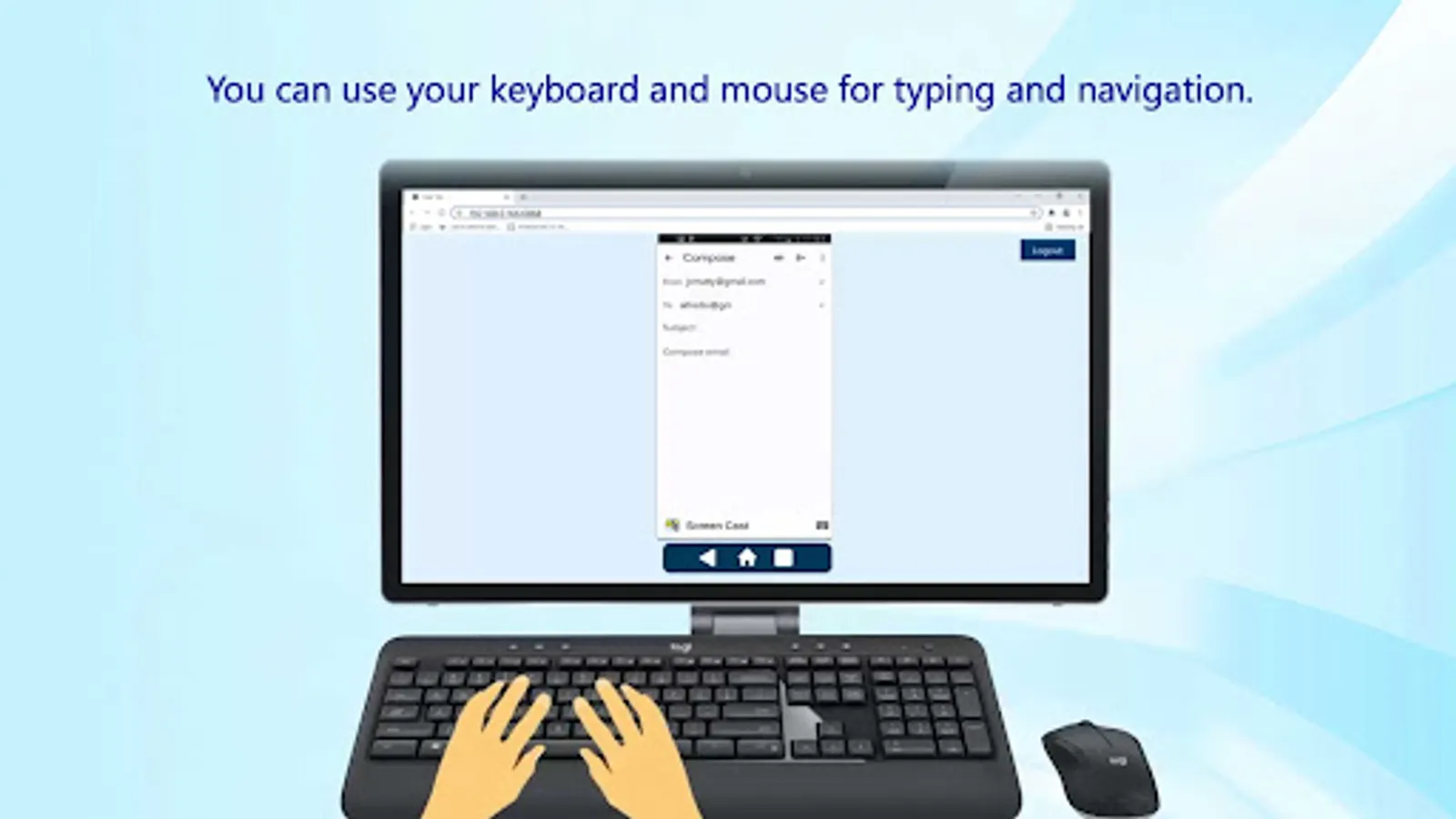 View your mobile screen to your PC, Mac, Tablet or Smart TV using Screen Cast. Use any device that has a browser and an internet connection to view your mobile screen remotely.