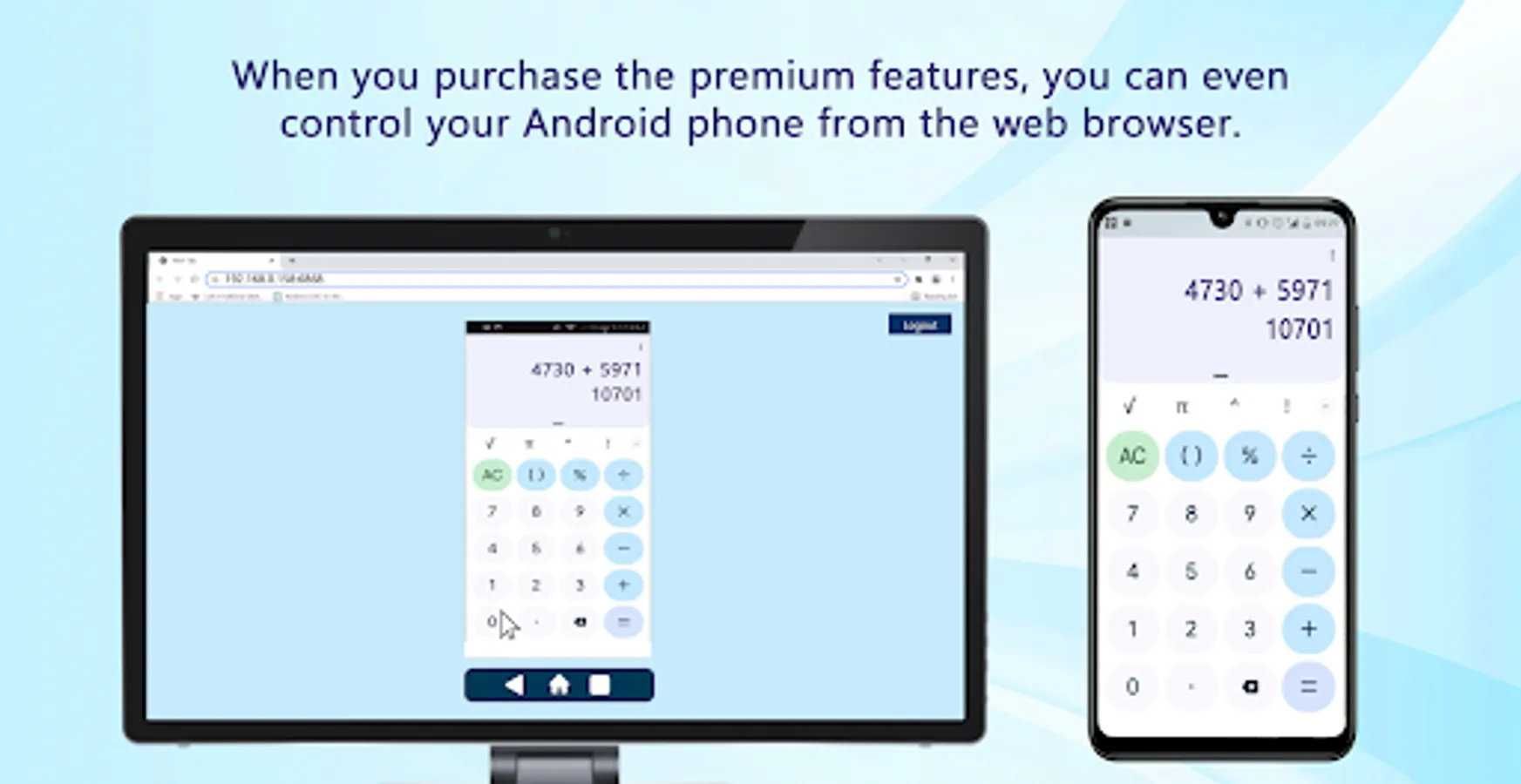 Allows multiple connections from different devices to connect and view simultaneously. An optional password can be required for connections, which can be changed from the broadcasting screen. Along with screen mirroring, we are now offering a feature that allows users to remotely control your phone or tablet directly from the web browser. The Accessibility permission is required for remote control.