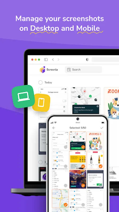 Main goal of Screenia app is to make life easier for everyone working with screenshots on mobile devices - QA engineers, marketing specialists, graphic designers, game developers or even students. That is why we’ve made it possible to work with mobile screenshots in a way that is the most comfortable for every one of them. With Screenia you can: