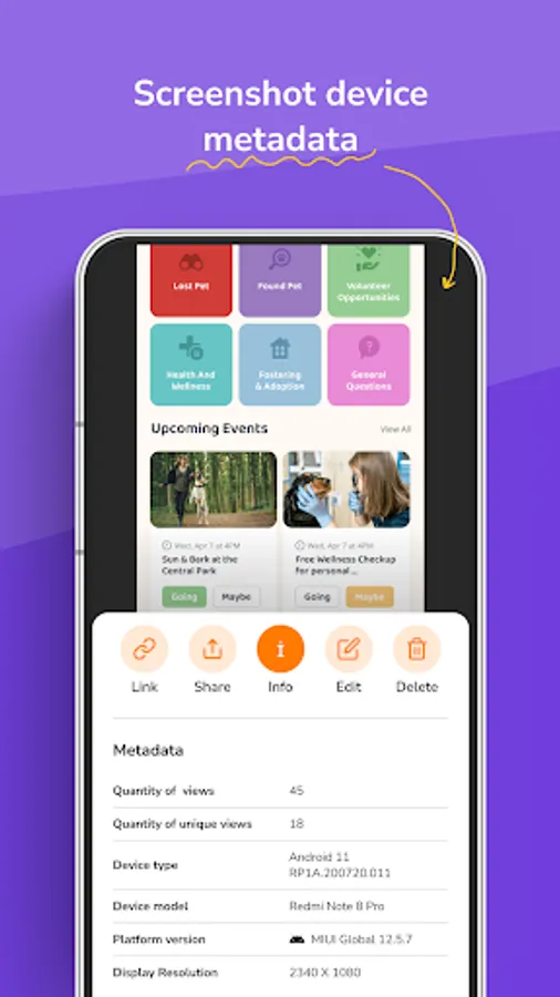 If you’re using Screenia in development process, we can ease your life by saving all the data about the environment of the screenshot for you - so if you’re sharing a bug report or a feature implementation request, your teammates will know what device this screenshot was made on and you won’t have to duplicate this info.