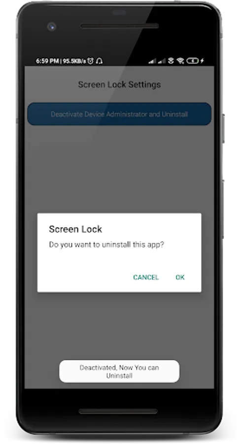 To uninstall this application deactivate this app from Privacy Settings >Device Administrators and then uncheck this application after this uninstall will work.