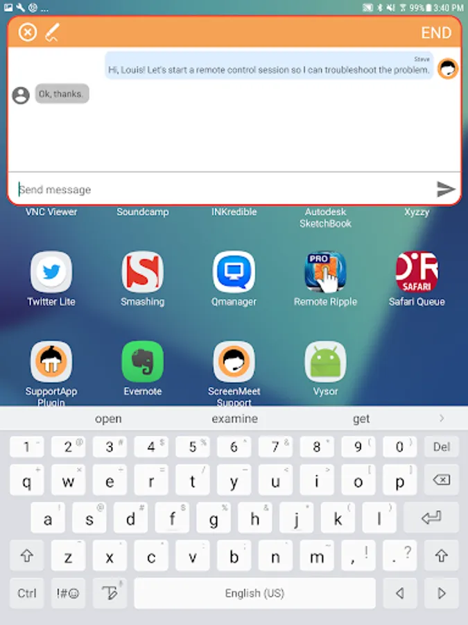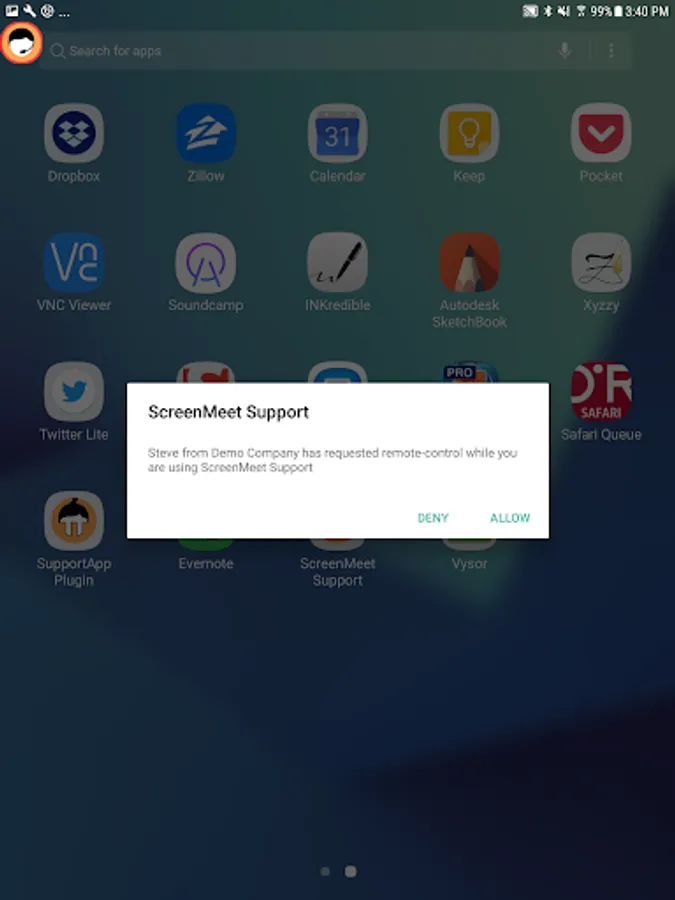 The ScreenMeet Support Plugin for Samsung extends customer support agent capabilities, allowing them to securely remote-control your Samsung device. This app uses the Device Administrator permission.