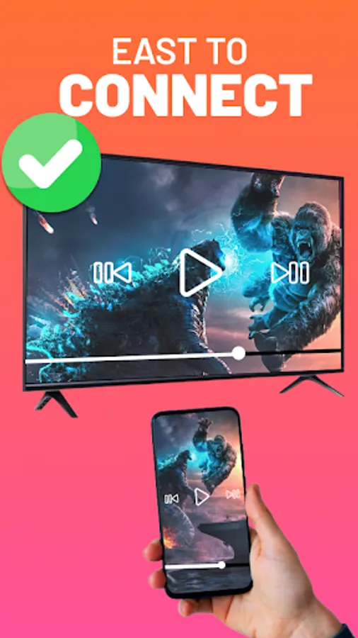 Screen Mirroring - Mobile to tv cast: Share your phone's screen, whether you're gaming, browsing photos, or enjoying movies and shows. With screen share Cast to TV, Screen Mirroring, enjoy the big screen experience. All controls in your hands with Remote control feature you can control the tv screen with your phone - volume, pause, forward, rewind, and more, all the screen share cast to tv. With screen mirroring for smart tv you can enjoy movies, songs or even you can cast photos and videos from your gallery on a large tv screen with high quality by smart screencast.