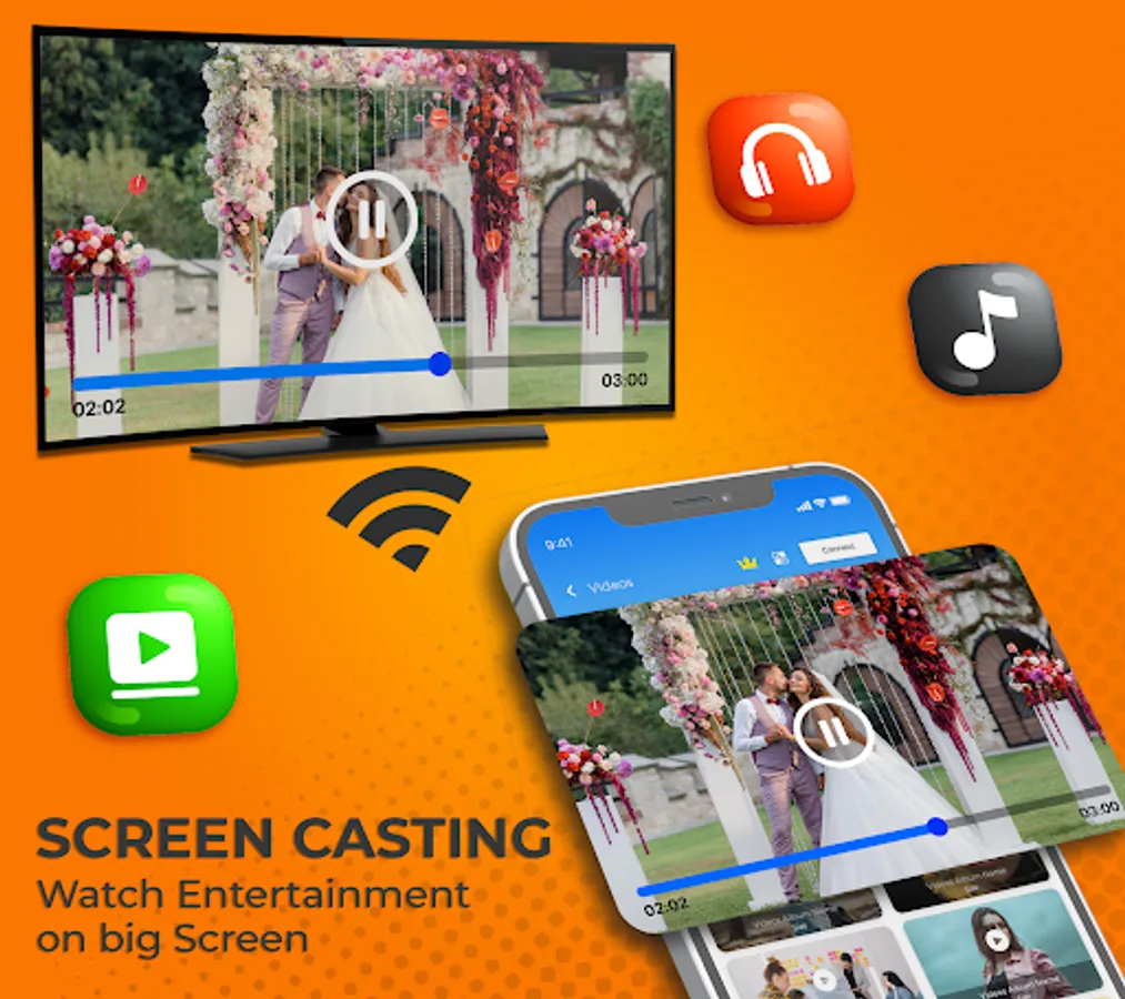 Want a cinema view of your favorite movies at home? Then try our Miracast & screen mirroring app and efficiently mirror the videos or funny content with your friends or family on the big TV screen.