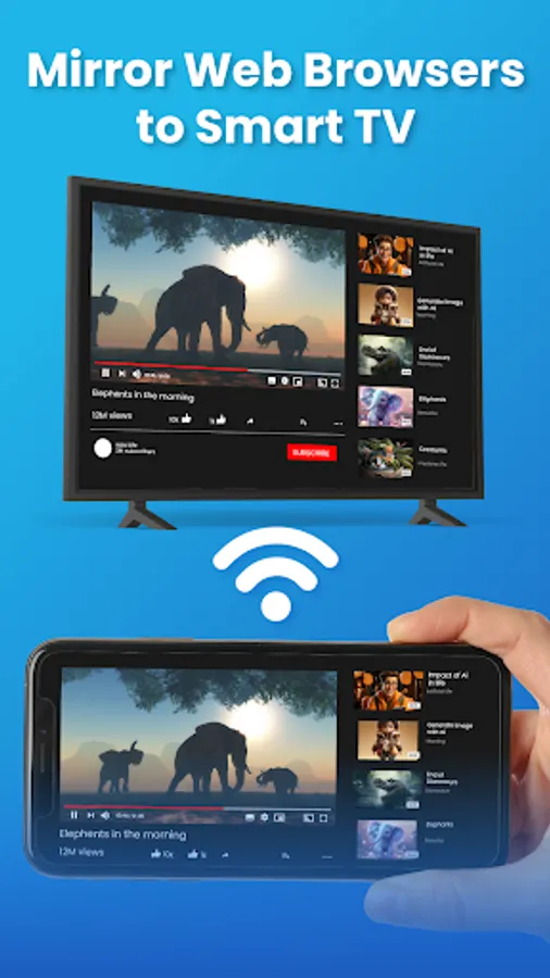 “Screen Cast & Mirror-smart TV” app helps you to cast a mobile screen to tv with sound and turn it into a bigger screen with ease. This app will also help you to mirror mobile to mobile, mirror your phone to tv, and screencast to tv.