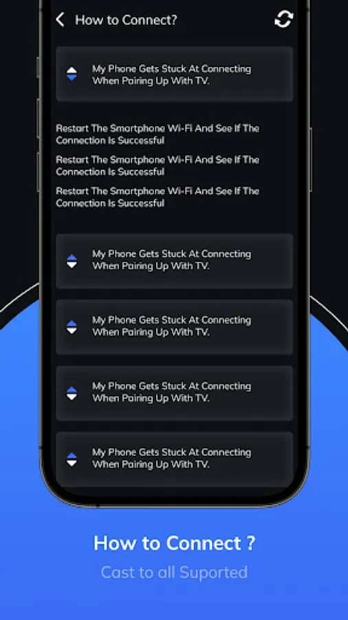 Cast TV app allows the screen mirroring that is able to play videos, music, photos, etc in your Smartphone with any devices (smartphone, smartTV, laptop, tablet) at anywhere.This Screen Mirroring App allows you to easily connect your device to your TV.