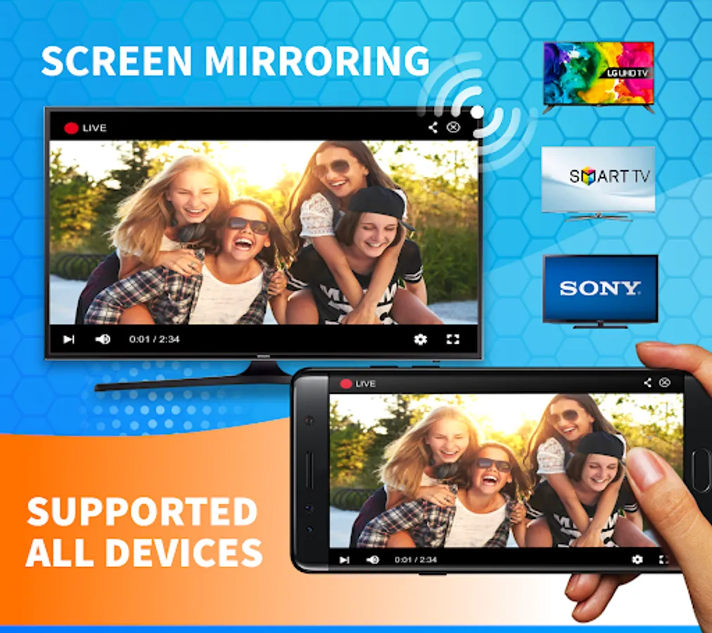 Cast TV and Screen Mirroring app is a useful tool that simplifies the management of all your devices. TV screen mirroring and miracast app helps to cast videos, photos, games, apps, presentations, websites, documents, spreadsheet, live video calls and many more on your smart TV.
