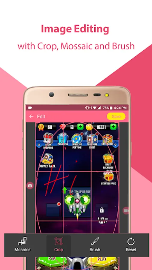 With a single touch, you can capture full screen easily even while recording video screen. With a screenshot you can easily capture the moment when you play the game.