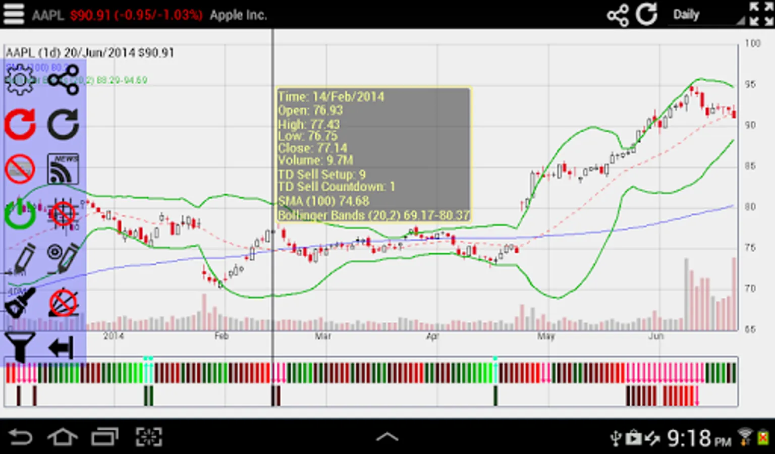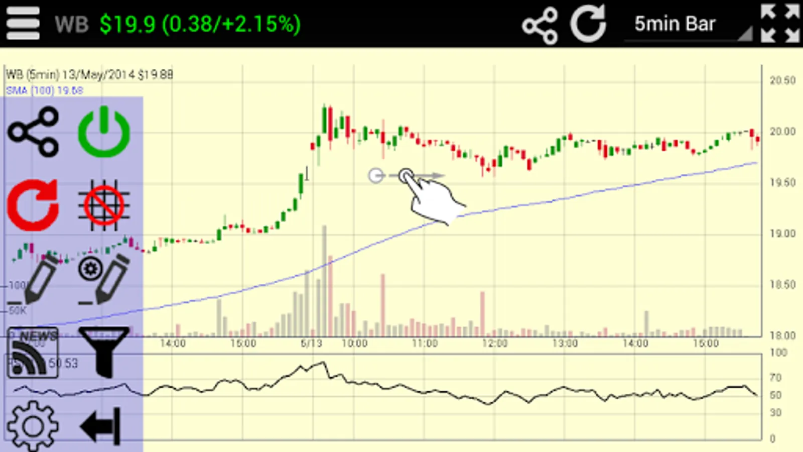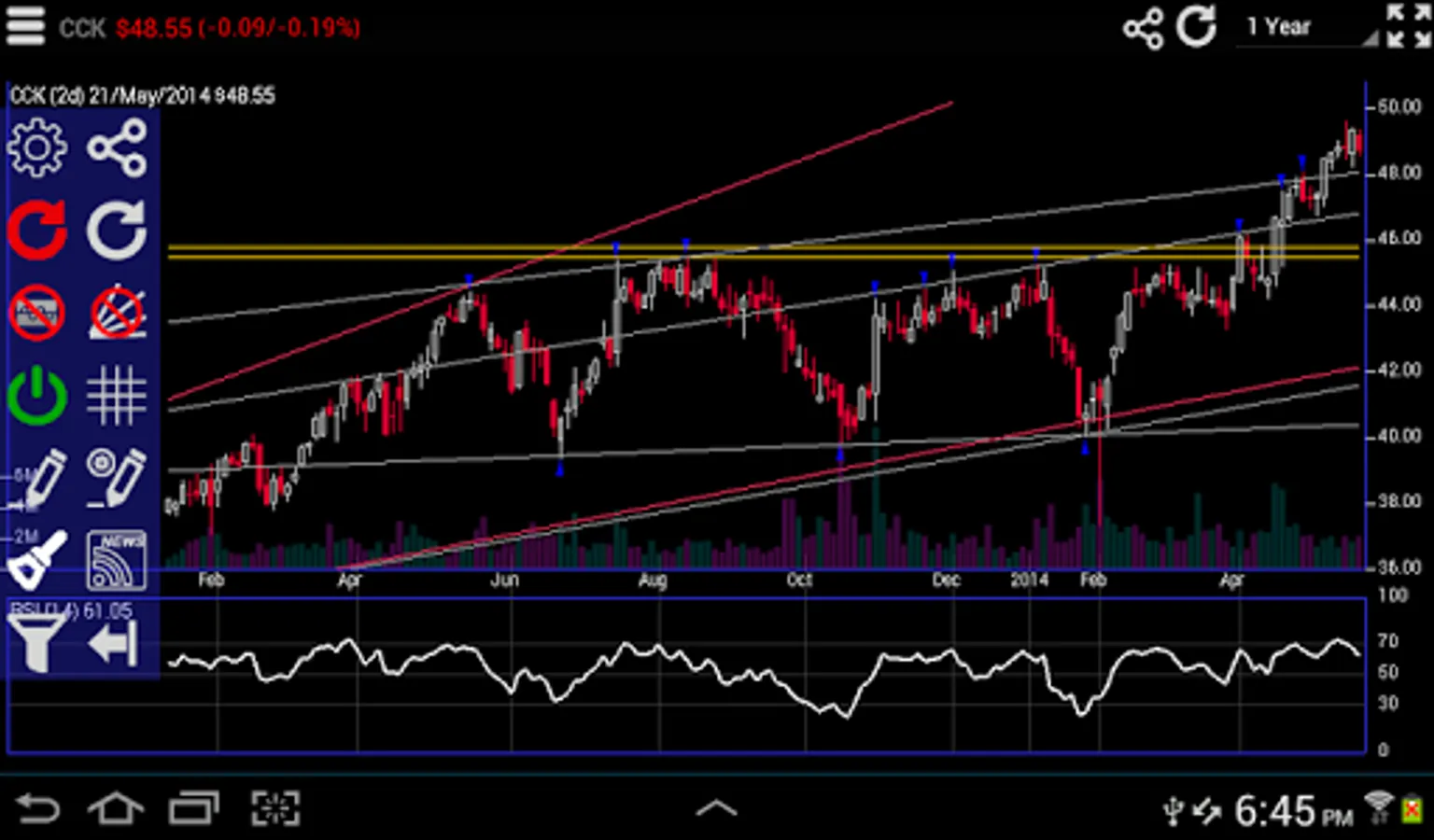 Interactive Stock Charts © is the most intuitive and advanced stock analysis charting app. You can freely adjust time frame and view technical information with touch of finger: scroll, pan and zoom on a beautiful candlestick charts with gesture and touch control. Swipe to scroll into historical analysis, pinch to zoom and change time frame, touch on price points to show detailed quotes and technical indicator values. You can also place real trade orders directly from the charts and portfolio view, through our partner Tradier Brokerage for US equity and options. Backed by Screenulator's patent pending automated chart pattern and trendline recognition engine, and industry's first 9,13 indicator completion screener! Interactive Stock Charts also comes with a powerful technical analysis tool set, Indicator Reliability Lab - in-chart backtesting tool and realtime RSS news feed to give you an edge over the market!