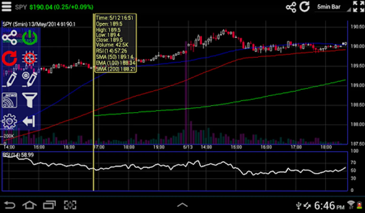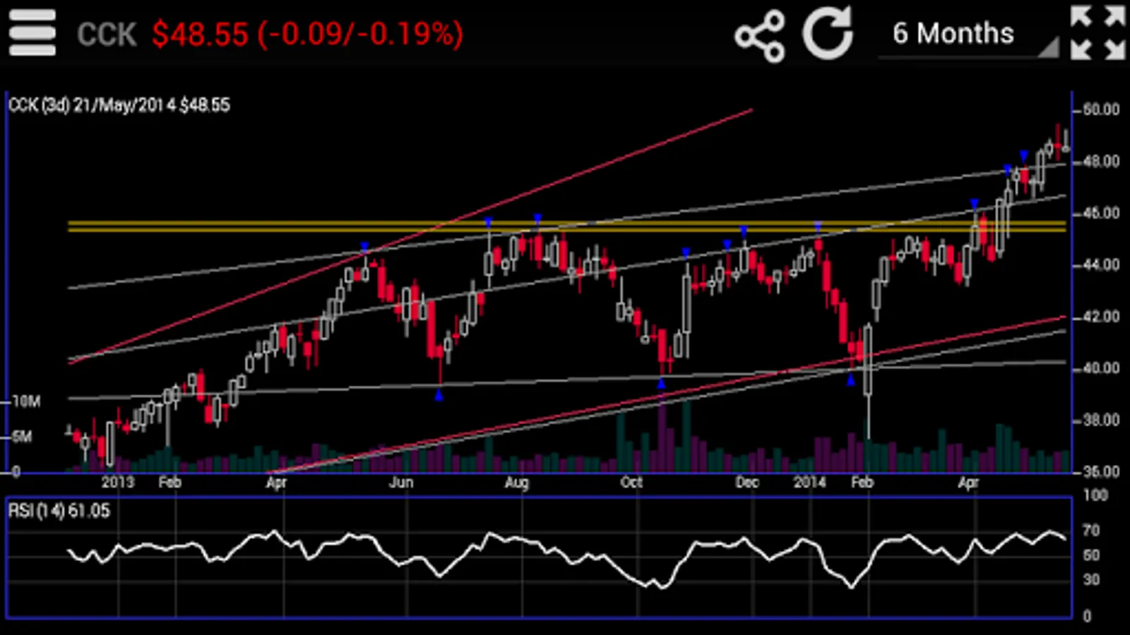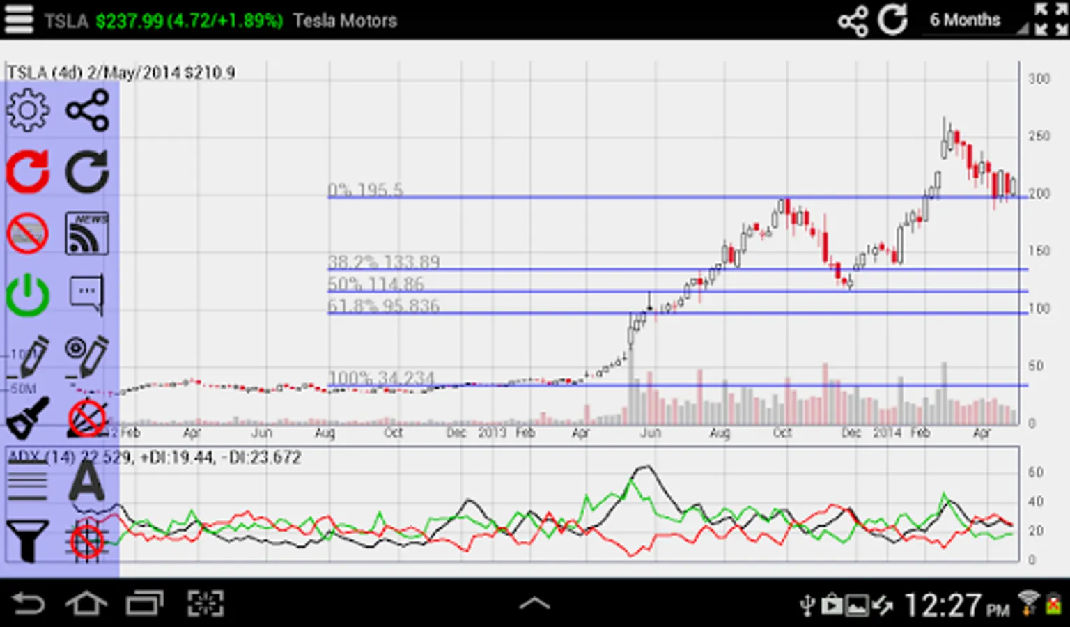 Interactive Stock Charts © is the most intuitive and advanced stock analysis charting app. You can freely adjust time frame and view technical information with touch of finger: scroll, pan and zoom on a beautiful candlestick charts with gesture and touch control. Swipe to scroll into historical analysis, pinch to zoom and change time frame, touch on price points to show detailed quotes and technical indicator values. You can also place real trade orders directly from the charts and portfolio view, through our partner Tradier Brokerage for US equity and options. Backed by Screenulator's patent pending automated chart pattern and trendline recognition engine, and industry's first 9,13 indicator completion screener! Interactive Stock Charts also comes with a powerful technical analysis tool set, Indicator Reliability Lab - in-chart backtesting tool and realtime RSS news feed to give you an edge over the market!
