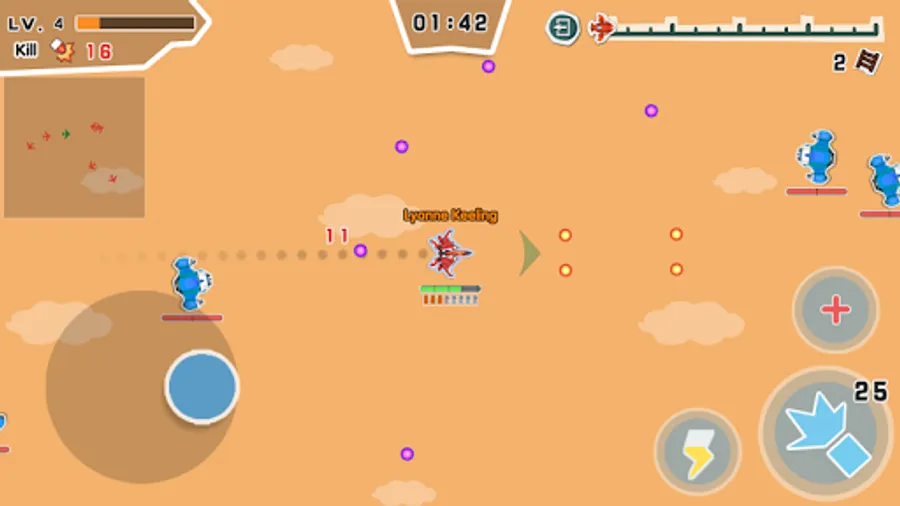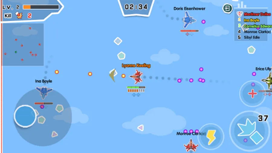 1.Control the motion by virtual control lever. Defeat your opponents with your planes;