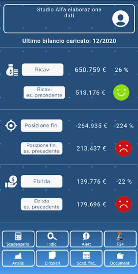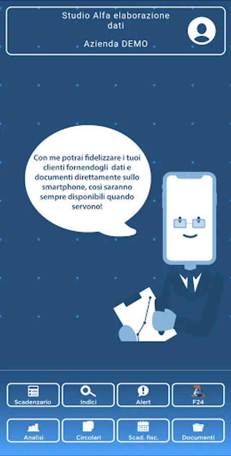 Scriba is the app that allows the accountant to communicate to the customer their business performance, customer supplier schedules, the deadlines of the f24 models and to distribute documents and circulars directly on their smartphone. Scriba analyzes financial statements, elaborates indices and comparisons between periods to allow the company to promptly assess any critical situations. With Scriba, the professional studio can count on a quick and effective tool for communicating with customers.