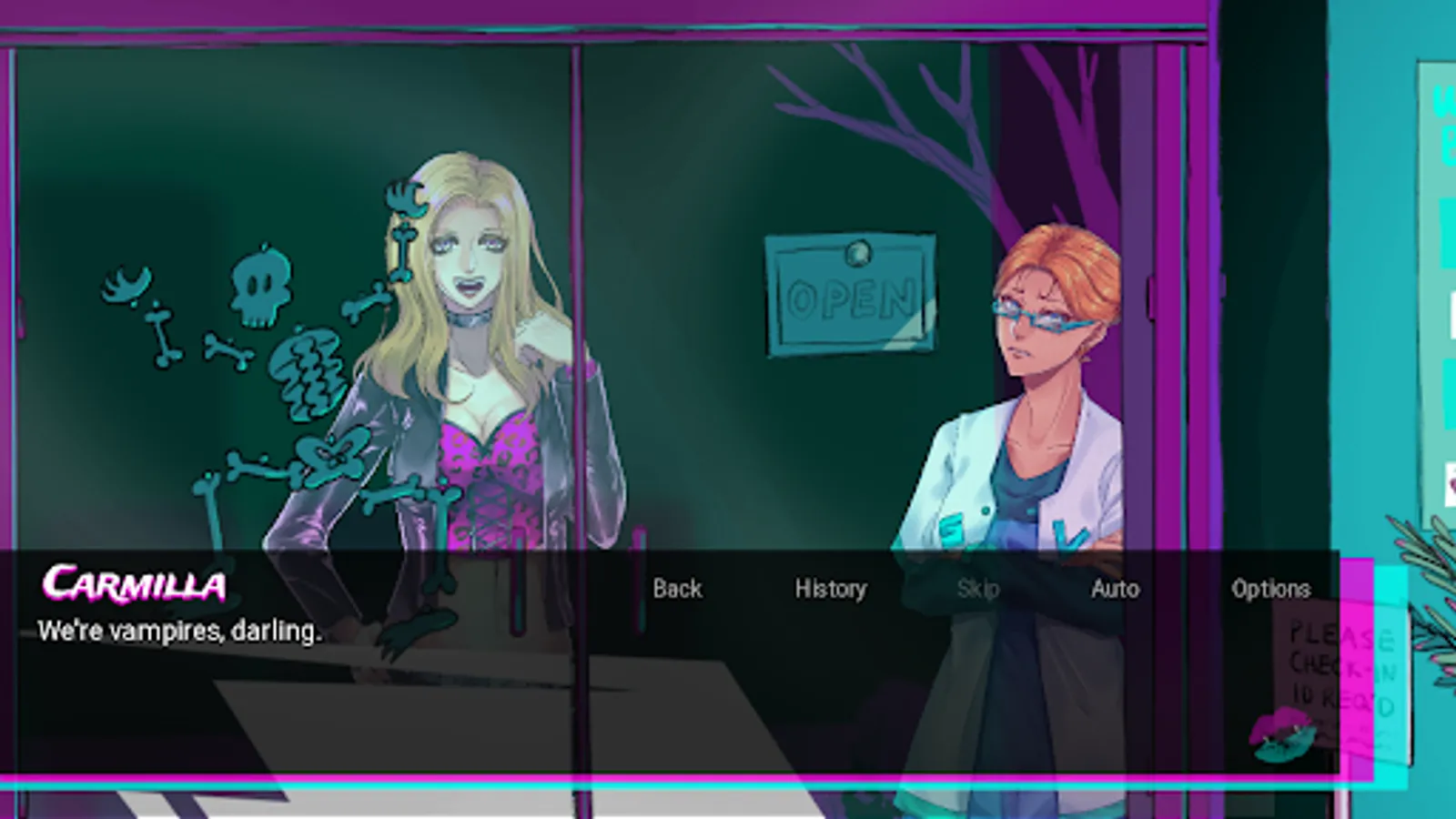After a successful blood donation drive, Mina is left working the graveyard shift on Halloween to catch up on all the paperwork. In the middle of yearning for her cheesy VHS rentals and the comfort of her pet rats, she hears something - someone? - outside. It’s two people- or rather, two vampires, both demanding a bit of blood.