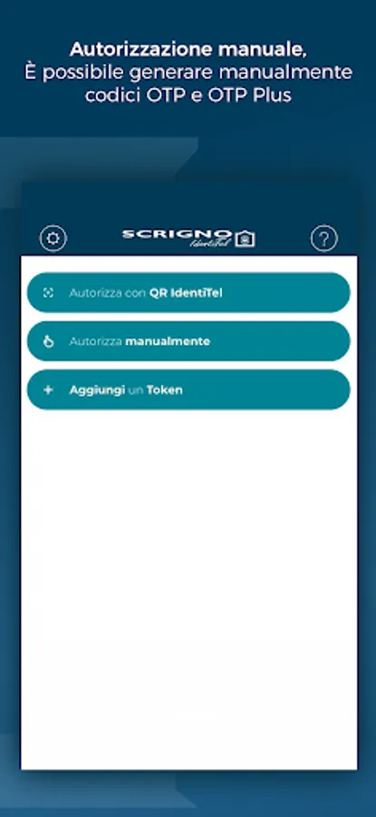 The application to generate the disposable security codes, called OTP (One Time Password), necessary to operate on SCRIGNO.