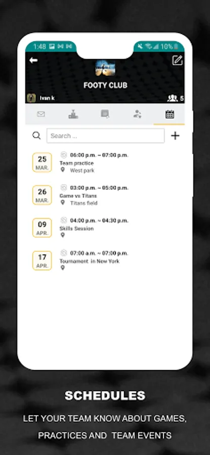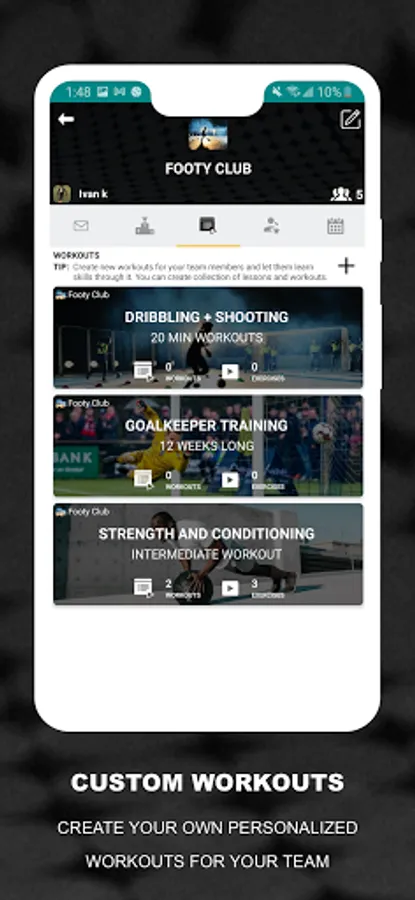 Features: Team competitions | Customized workouts | Video review | Schedules | Team Chat
