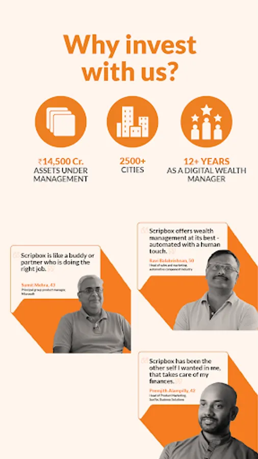 Scripbox has been India's trusted digital wealth manager since 2012, managing ₹15,000 crores worth assets and has successfully helped 50,000+ families invest in mutual fund and achieve their goals.