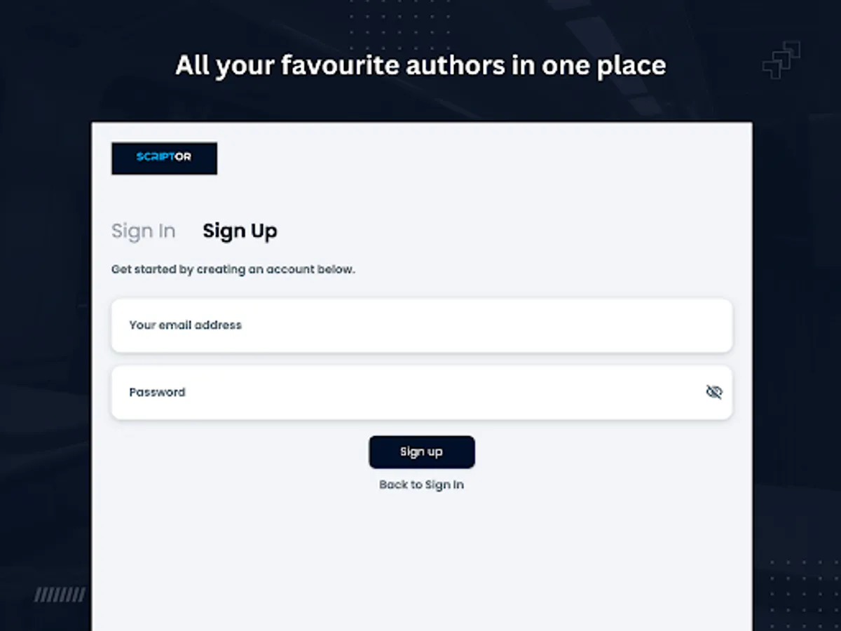Scriptor is the one stop application for all book lovers. View both old and upcoming authors as well as their publications in one place.