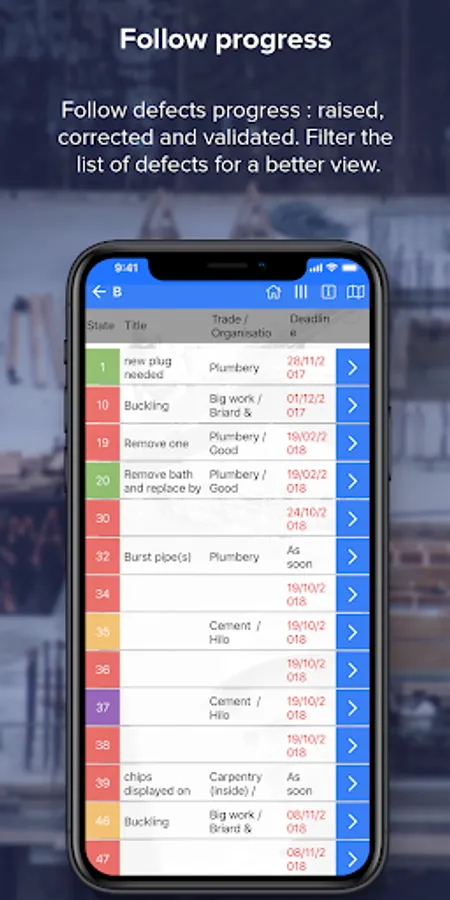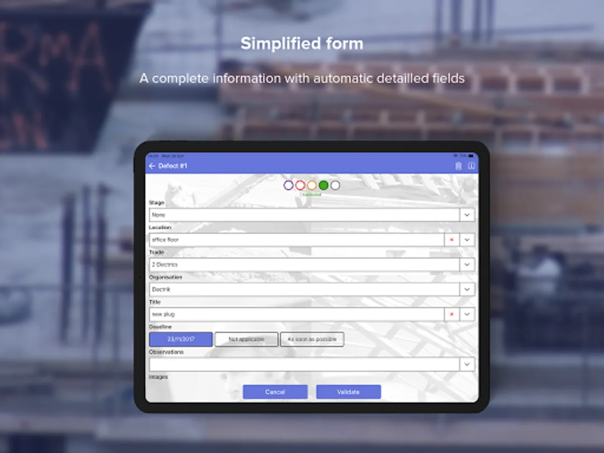 => Create, manage and correct your defect on site. On mobile or tablet, the application replaces the use of spreadsheets or paper.