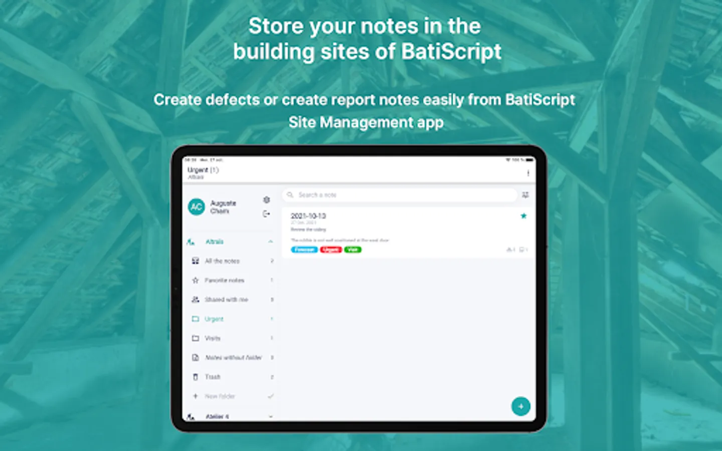 Finally, import quickly your notes into the BatiScript defect modules and the site report module