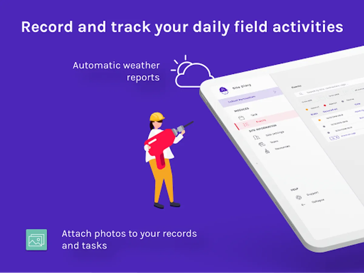 Site Diary app replaces the existing paper construction daily reports, site journal or daily logs, where field workers make a report of things that occurred on their projects. With Site Diary app, we make the whole process quick, fun and simple so you both have a detailed daily report and time left to focus on building more.
