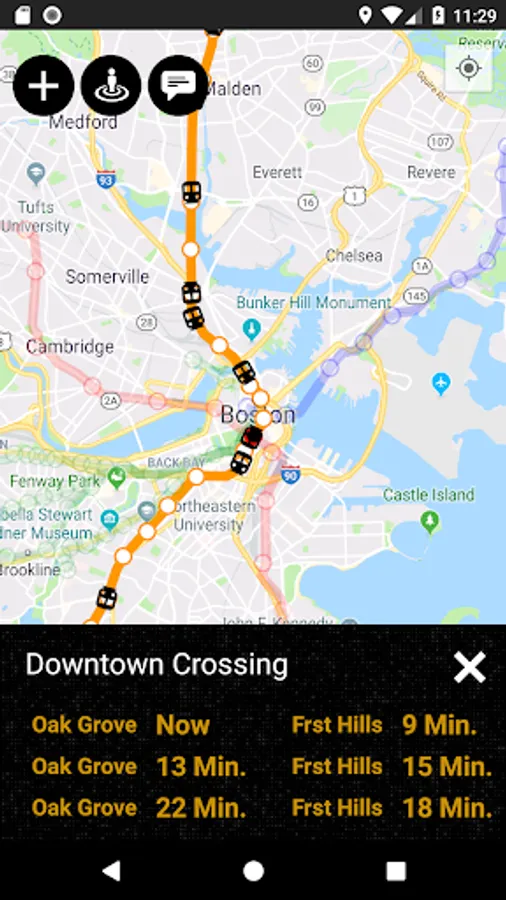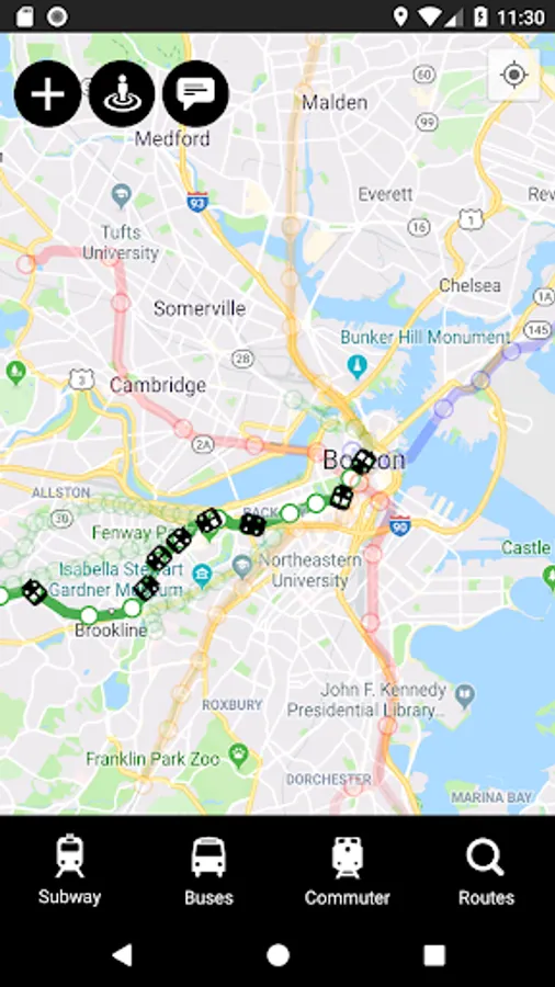 - Real-time locations of all subway trains, busses, and commuter rail trains