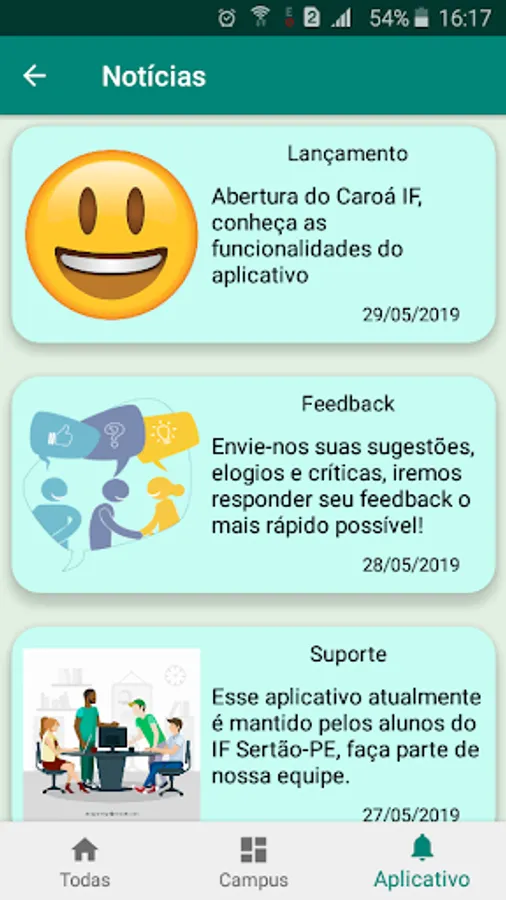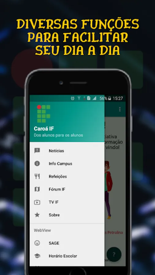 This application has as its main objective to facilitate access to relevant information about IF Sertão-PE for its community (students, employees and others involved).