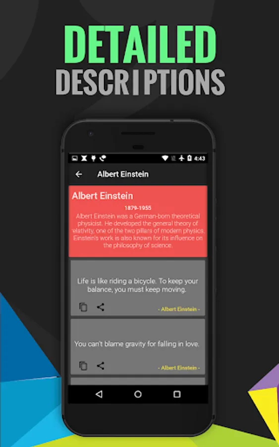 It contains sayings from philosophers, writers, spiritual thinkers and other great minds whose brilliant words inspired many human beings. See it for yourself, download it now and get inspired every day!