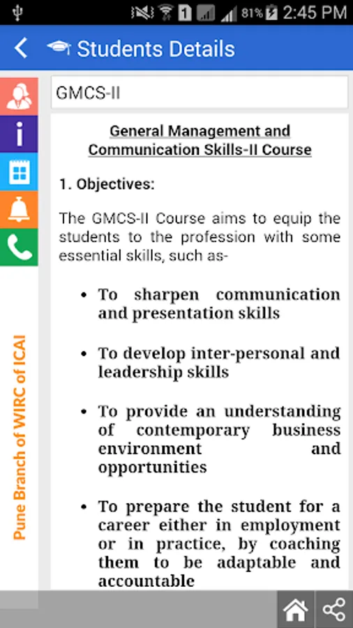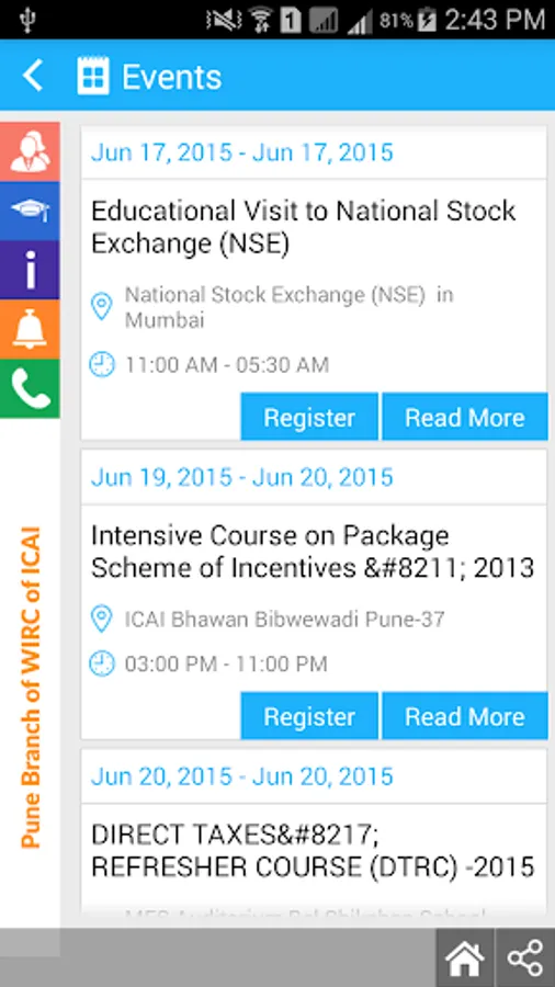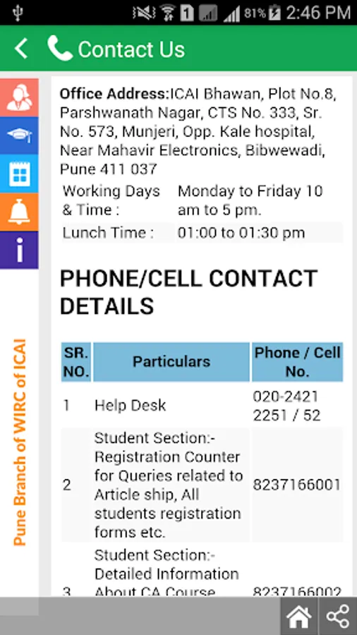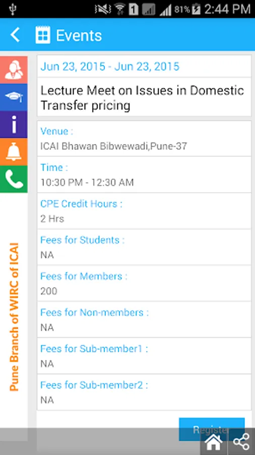 Pune Branch of WIRC of The Institute of Chartered Accountants of India ( ICAI ) identified the need of Mobile Application for it's stakeholders ( Members, Students & Others ).