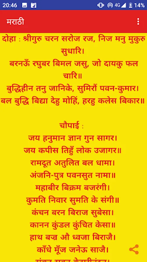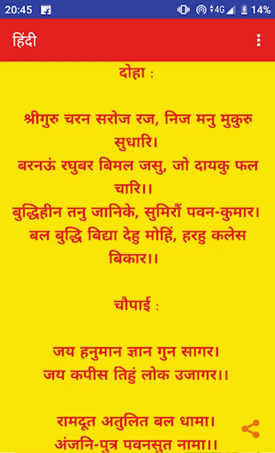 Hanuman chalisa app has big readable Text Font size for old age people to feel comfirtable to read.