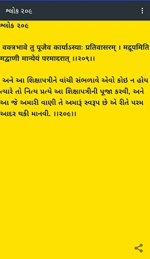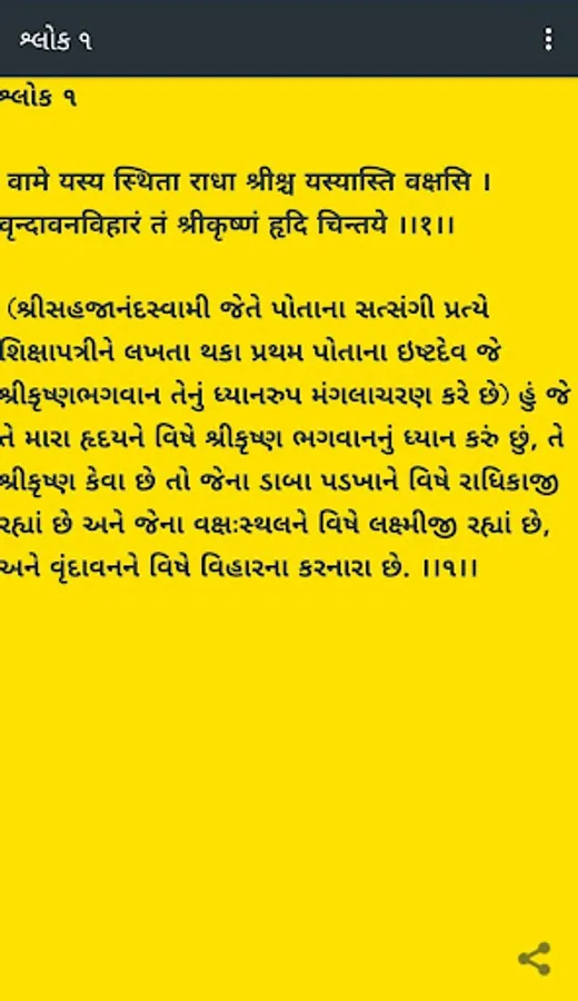 અહીં આ એપ્લિકેશન સંસ્કૃત શ્લોકા દ્વારા અનુસરતા ગુજરાતીમાં શિક્ષાપત્રીનું પ્રતિનિધિત્વ કરે છે.