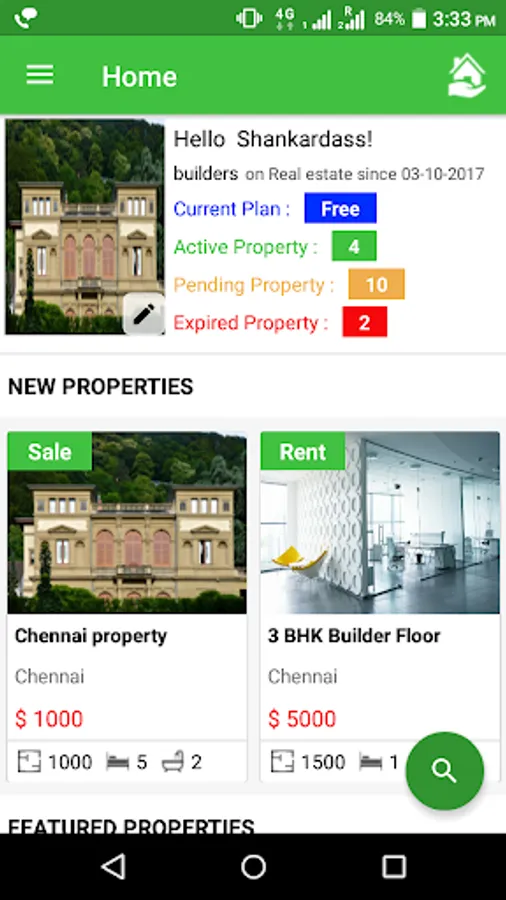 In this app, there are two types of users: 1. Individuals 2. Builders. Users can register and login from the app by using their login details. They can search and view the property list and property details with ease from our advance real estate android application.