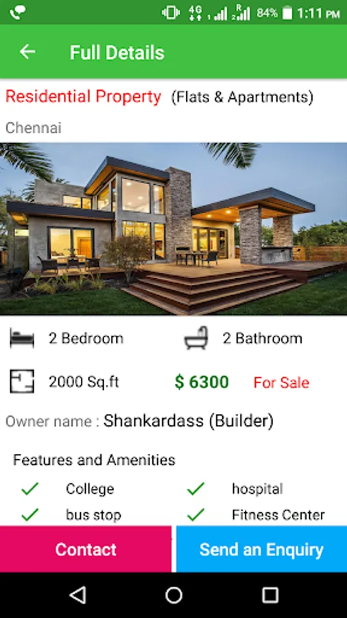 The app also enable the users to view the contact info of the owner or the builder of the property, can send enquires and can able to see the contact phone number & email id.