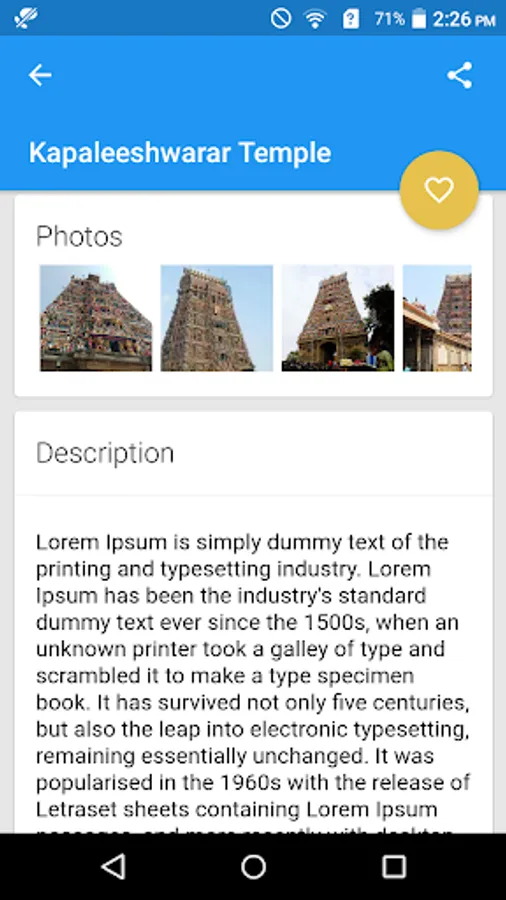 City Guide - App for an finding the places in your city. Admin can manage the city and places in the city. App will shows the place name, location, place details with multiple image related to the place. User can also get distance to the place. User can search the places like Entertainment, Sport, Public services etc. User can add or remove the city to their favorite list. User will get direction to the place via maps. User can share the place as well as the app to others.