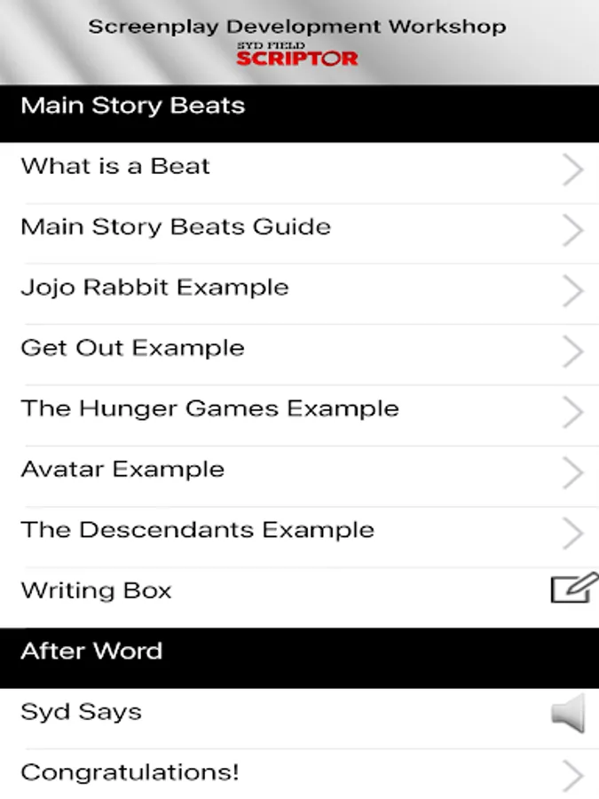 The Syd Field Scriptor screenwriting app shows you how to take an unformed idea and design it into a dramatic storyline with a beginning, middle and end.