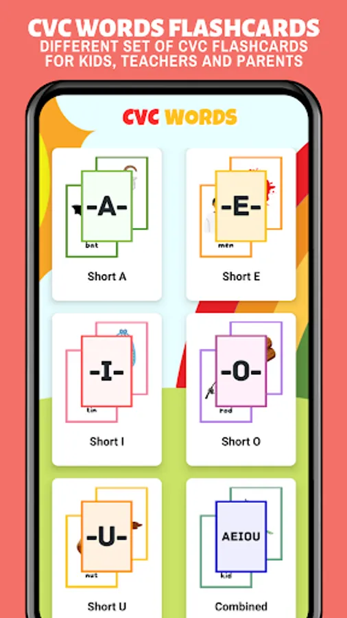 CVC Words Flashcards App is the new and best way to learn suits for kids, parents and teachers.