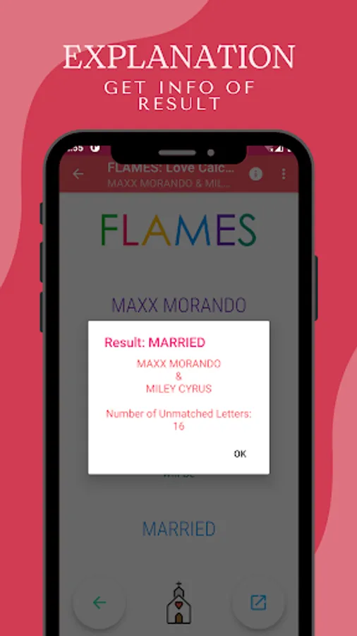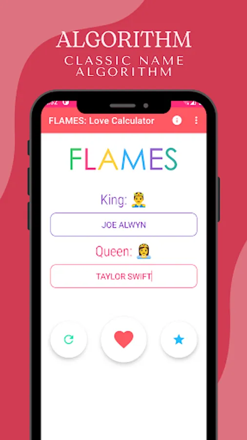 FLAMES: Love Calculator assesses and predicts the outcome of a relationship based on classic algorithm of two given names.