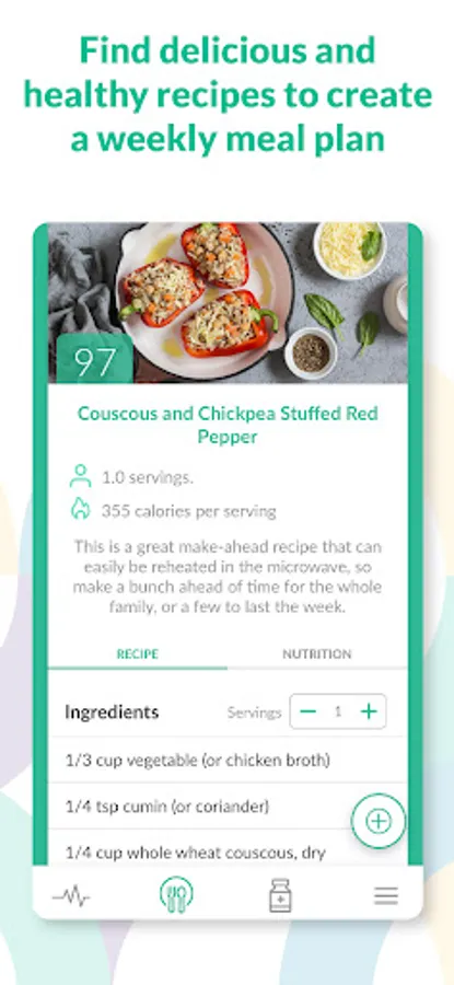 • Easy to use meal planner with over 400 delicious recipes aligned to your health profile, nutrition goals, and dietary preferences.